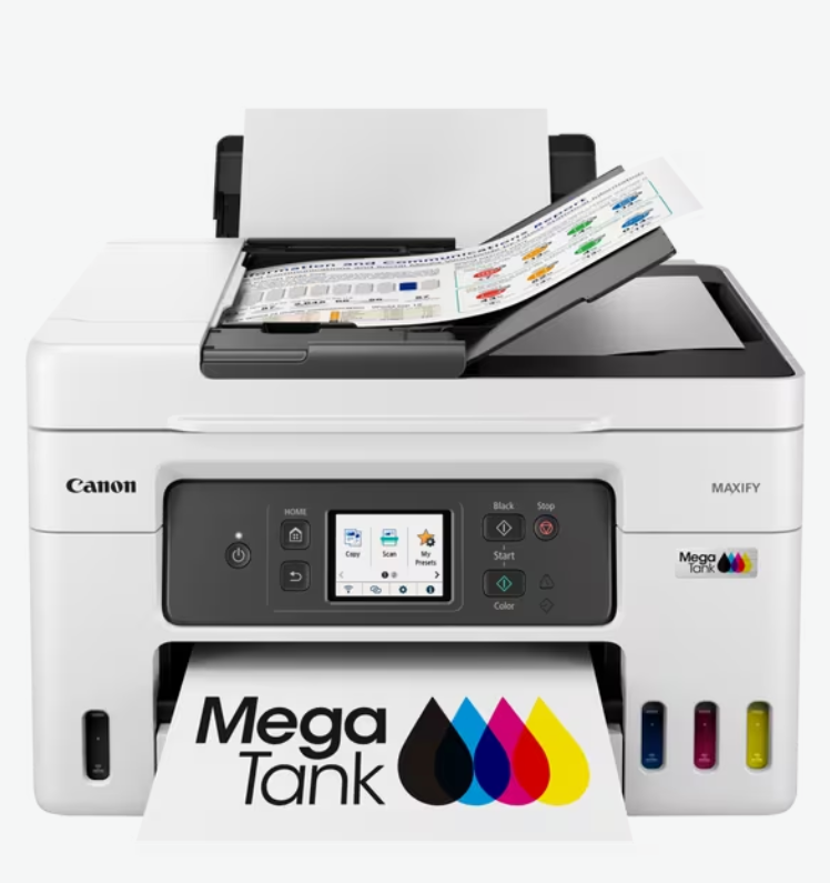 Imprimez de gros volumes de documents professionnels de haute qualité tout en réalisant d'importantes économies sur le coût par page1 et le coût total de possession2 grâce à cette imprimante MegaTank MAXIFY GX 4-en-1 rechargeable et facile à utiliser, équipée d'un chargeur automatique de documents et d'options de connexion Wi-Fi et Ethernet.