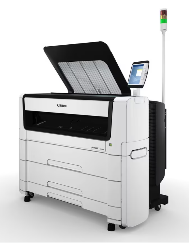 Cette imprimante monochrome grand format de 6ème génération pour la CAO et les documents techniques offre une solution sur laquelle vous pouvez vous appuyer pour les années à venir. Ce système dispose de 4 rouleaux et d'une vitesse d'impression de 8 A1 p/m pour le format T50 et de 10 A1 p/m pour le format T55, avec chargeur de feuilles inclus.