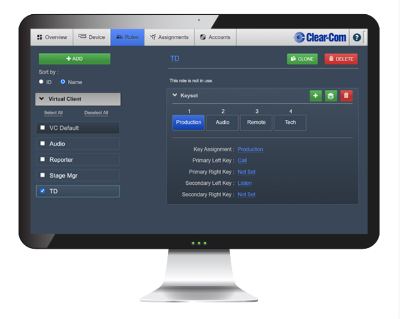 Gen-IC provides Agent-IC and Station-IC Virtual Clients access to any Channel and associated LQ interface. Individual Agent-IC and Station-IC Virtual Client keysets provide with large talk/listen controls, individual level control, visual call signalling and device notifications. Gen-IC and the SkyPort Administration Portal host centrally administrated credentials for the Virtual Clients as well as Roles that may include different keyset configuration for the user and can be fixed to specific credentials, or selected from the clients.