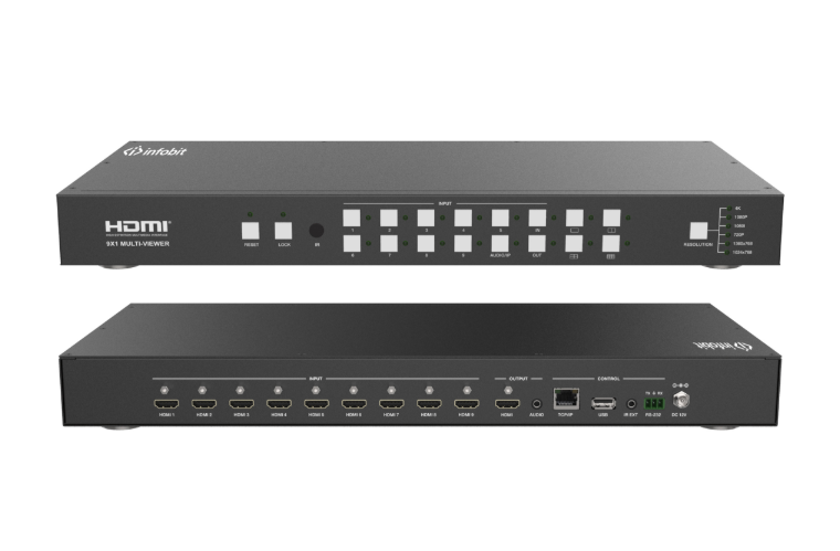 9x entrées HDMI, 1x HDMI et 1x sortie audio analogique déintégrée