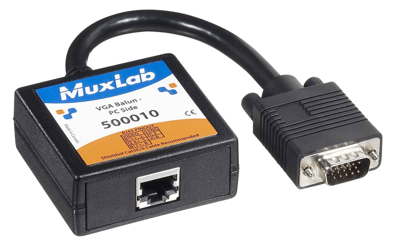 Utilisé par paires, le VGA Balun permet de transmettre la vidéo VGA jusqu’à 350 pieds (107 m) via Cat5e/6 à une résolution de 800 x 600. Chaque connexion VGA nécessite un Balun VGA à la source (500010) et un Balun VGA (500011 ou 500014) à l’écran. Le VGA Balun fonctionne en collaboration avec des PC, ordinateurs portables, plasma, moniteurs LCD et projecteurs DLP.