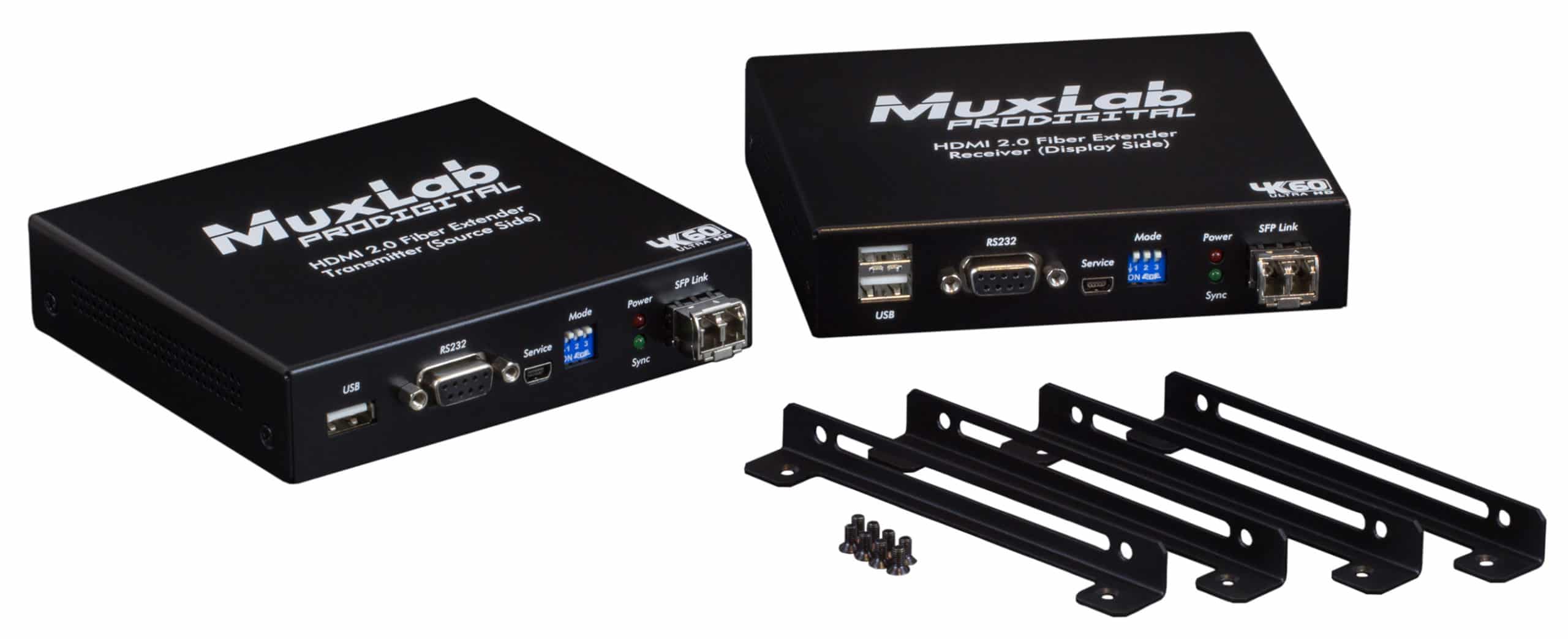 Le kit HDMI 2.0 Fiber Extender, mode unique (modèle : 500485) permet de transmettre un canal HDMI 2.0 et un canal USB 1.1 jusqu’à 10 km (6,25 miles) à toutes les résolutions jusqu’à 4K2K@60Hz via un câble fibre optique monomode en configuration point à point. De plus, le kit HDMI 2.0 Fiber Extender Kit, mode simple, est conforme à la norme HDCP 2.2 et prend en charge la transmission de signal USB IR et RS-232 pass-through ainsi que clavier/souris.