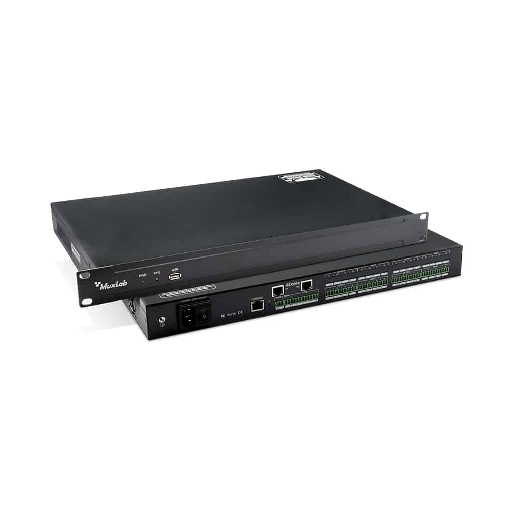 Le Dante 8-Channel Audio DSP (Modèle 500601) est un produit développé pour la transmission, le routage et le traitement des signaux audio dans les réseaux Dante. Il peut effectuer des transmissions audio de haute qualité avec faible délai, prend en charge des canaux analogiques équilibrés 8 voies d’entrée et de sortie, et peut être alimenté via une prise d’alimentation 110-220VAC. Ce processeur prend en charge l’entrée et la sortie de l’équilibrage du signal audio analogique 8 voies ainsi que l’entrée et la sortie du signal audio numérique Dante 8 voies. Il dispose également d’une carte audio USB qui prend en charge un canal d’entrée audio et un canal de sortie audio. L’appareil possède l’un des meilleurs algorithmes DSP de l’industrie, incluant des options telles que AEC, AFC, ANC, Ducker, Compresseur, Limiteur, Mixeur et Égalisation graphique, entre autres. De plus, le produit fournit un logiciel de contrôle de version PC permettant de surveiller et d’opérer toutes les fonctions du DSP de manière simple et intuitive. Des commandes API complètes sont disponibles pour l’automatisation système. Prend en charge plusieurs ensembles de préréglages de scène.