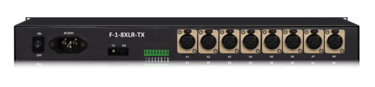 - L'émetteur optique offre jusqu'à 8 interfaces XLR pour une entrée audio symétrique.