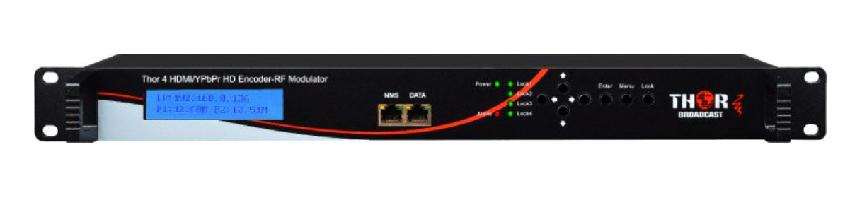 Les programmes entrants via ASI peuvent être multiplexés et réaffectés à la sortie ASI, ajoutant ainsi une fonction supplémentaire à l'appareil : celle de multiplexeur ASI. La TVIP n'est en aucun cas négligée. Les quatre programmes encodés peuvent être associés à des adresses IP et des ports de sortie uniques, aux formats UDP ou RTP . La sortie IP peut être configurée pour supprimer les paquets nuls afin de réduire la bande passante réseau ou pour préserver le bourrage de paquets à débit binaire constant (CBR), généralement privilégié par les systèmes de télévision. Les quatre canaux peuvent être configurés indépendamment pour la diffusion multicast ou unicast. Le sous-titrage est pris en charge via un port analogique CC 608 dédié avec connecteur RCA, une norme du secteur pour les systèmes de sous-titrage de la ligne 21. Tout signal vidéo standard 720p ou 1080p, aux formats HDMI ou YPbPr composantes, peut être utilisé pour chacun des quatre canaux. Ce boîtier prend également en charge le 480i pour les téléviseurs plus anciens via des câbles coaxiaux RF RG6. Comme tous les autres châssis de modulateurs professionnels Thor, ce système peut être configuré avec un firmware pour une sortie au format de canal QAM , DVB-C , DVB-T ou ATSC .