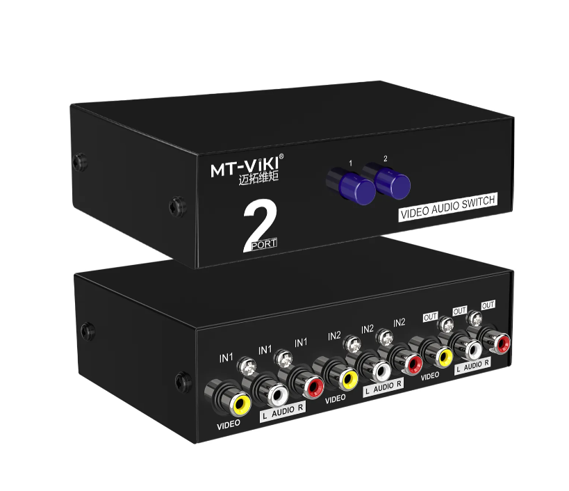MT-231AV Le commutateur audio et vidéo à 2 ports av est parfait pour les amateurs de télévision qui souhaitent ajouter plus d'entrées à leur écran haute définition. Utilisez le MT-2231 pour connecter sans effort un lecteur DVD et un décodeur ou un récepteur satellite à votre téléviseur ou projecteur. En appuyant sur le bouton, il vous permet de profiter de la commutation multimédia dans le confort de votre siège. Le commutateur AV MT-2231 prend en charge les appareils vidéo numériques haut de gamme tels que les lecteurs et enregistreurs de DVD, les décodeurs, les récepteurs satellite, etc.