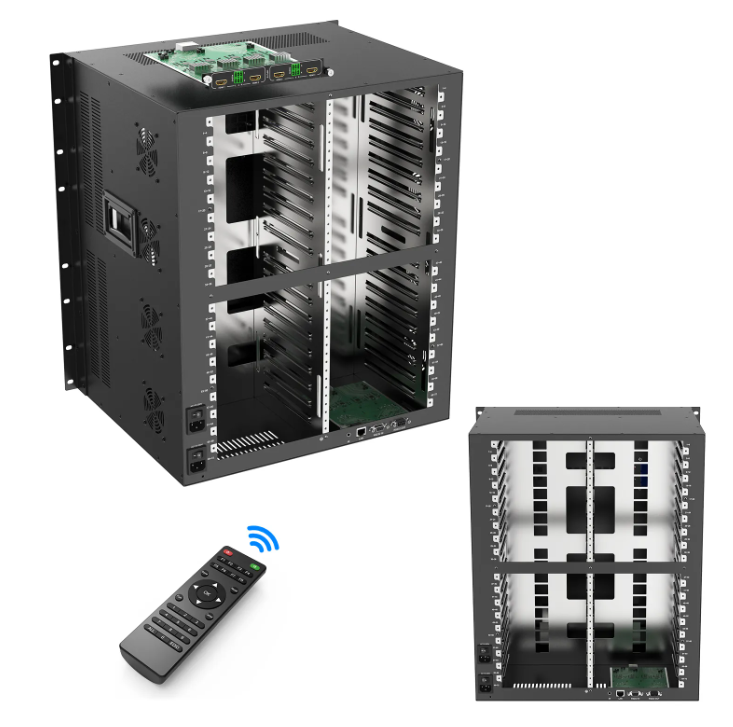 - Ce commutateur modulaire prend en charge les entrées et sorties 4K, de manière transparente, avec mode d'épissage, veuillez nous contacter pour plus de détails