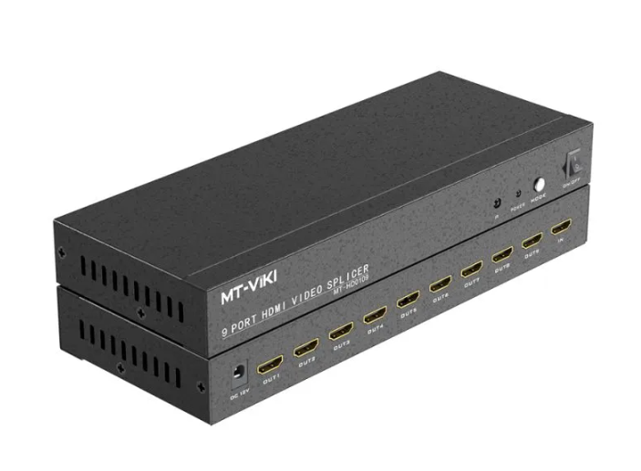 Ce contrôleur de mur vidéo 3 × 3 prend en charge 1 entrée HDMI et 9 sorties HDMI. La fonction principale est de diviser un signal d'image haute définition HDMI complet en 9 blocs et de les affecter à 9 unités d'affichage vidéo.