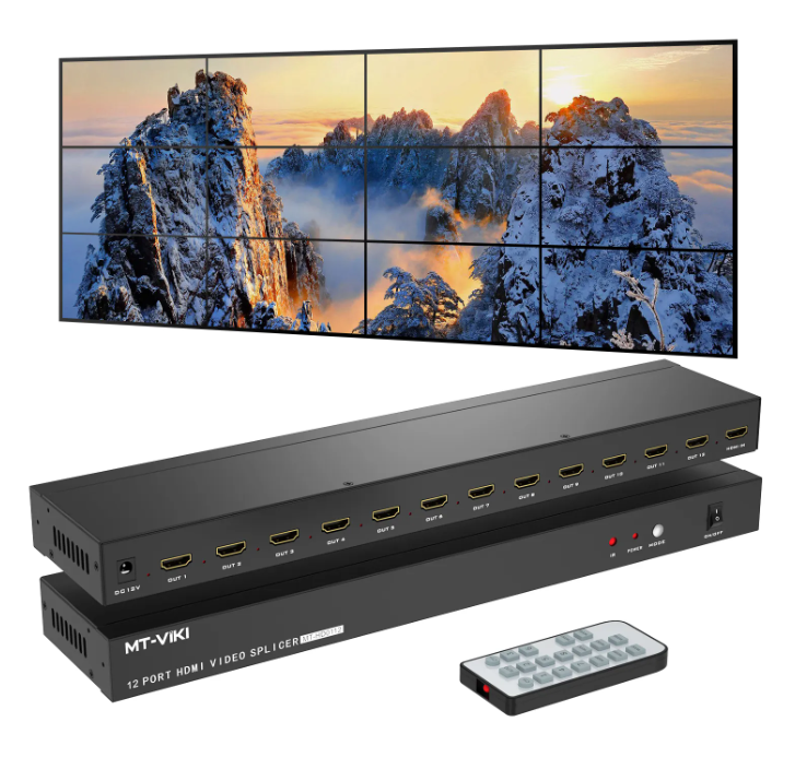 Ce contrôleur de mur vidéo prend en charge 1 entrée HDMI et 12 sorties HDMI. La fonction principale est de diviser un signal d'image HDMI haute définition complet en 12 blocs et de les attribuer à 12 unités d'affichage vidéo. Il s'agit d'une nouvelle version améliorée du produit. Il dispose de jusqu'à 12 interfaces. Veuillez consulter notre vendeur pour plus de détails.