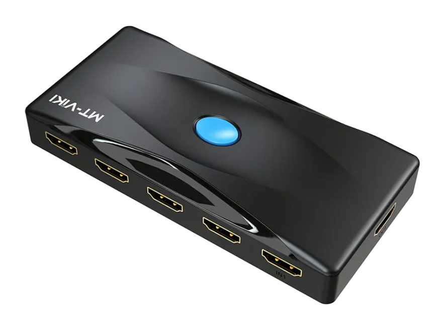 Ce commutateur HDMI 5 × 1 prend en charge 5 entrées vers 1 sortie. La résolution peut atteindre 4K*2K@60Hz. Le commutateur HDMI à 5 entrées et 1 sortie est très pratique à commuter, vous pouvez utiliser le bouton-poussoir, la télécommande IR, et ce commutateur HDMI à 5 ports prend en charge la fonction de détection automatique du signal d'entrée. Si le signal du port sélectionné est coupé, ce commutateur HDMI passera automatiquement au signal d'entrée suivant, de cette façon, votre commutation sera plus pratique.
