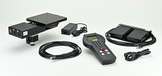 Using our Remote Control Unit, up to 9 individual CueSpin units can be controlled independently. Pan left or pan right is accomplished by using a toggle paddle switch. Up to 9 pre-set positions can be stored with each CueSpin. For ease of use, 4 of the pre-set positions are controlled using backlit push buttons. The other 5 pre-set positions, as well as selecting the specific CueSpin body to rotate, are selected using a 12 key keypad. A backlit LCD display provides the user with simple and intuitive control. The Remote Control Unit can be positioned up to 100 feet away from the CueSpin unit. Cabling is standard RJ45 Ethernet.