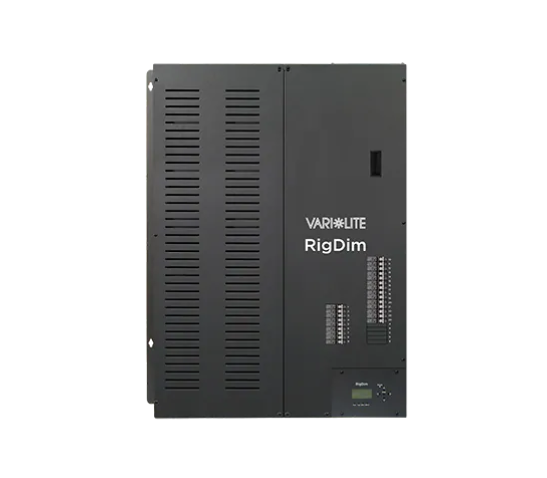 The Vari-Lite RigDim Power Cabinet is a configurable 120V/277V theatrical power cabinet, offering high-performance dimming and architectural power control for entertainment venues. RigDim offers up to 24 circuits of power, with 3 auxiliary circuits available for the 120V models. Integrators can select up to 6 power modules, combining IGBT dimming, 0-10V architectural dimming, and relay-controlled power in a wall-mounted, convection-cooled cabinet with a 10,000 SCCR fault current rating.