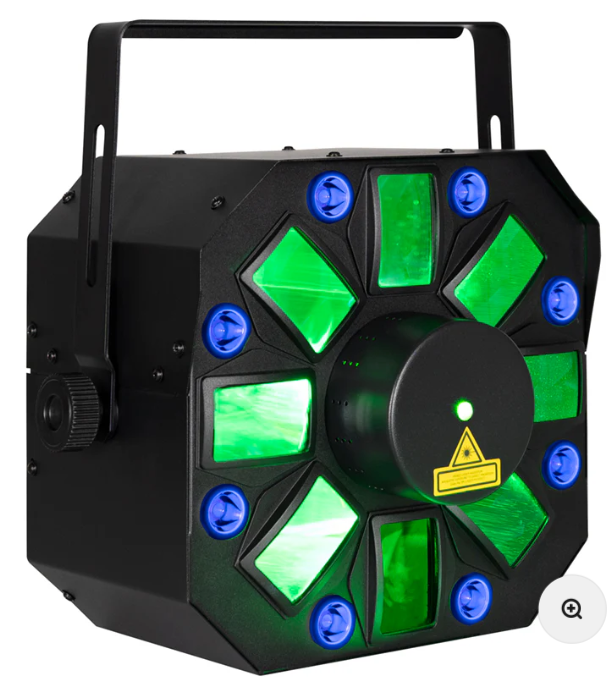 • 3-FX-in-1 dance party lighting effect: LED Moonflower, Wash, and Laser effects