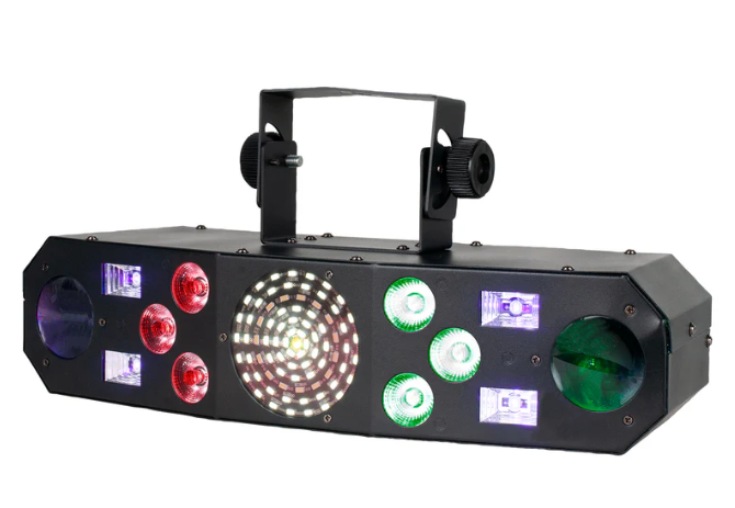 The Eliminator Lighting Furious Five RG offers five exciting entertainment lighting effects in one fixture. Its lightweight and easy to use in sound active mode, or create your own programs using the DMX controls.