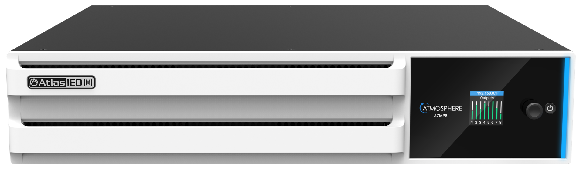 The Atmosphere AZMP8 is a powered (1200 Watt) 8-zone audio processor and the heart of an Atmosphere audio control system. Powerful DSP combined with innovative algorithms offer custom solutions for a wide variety of spaces. A built-in message player, virtual wall controllers, learning ambient noise sensing, Tilter Filter™, auto-gain, GPIO, bell scheduler, room combine, and many more features, make the AZMP a processing powerhouse.