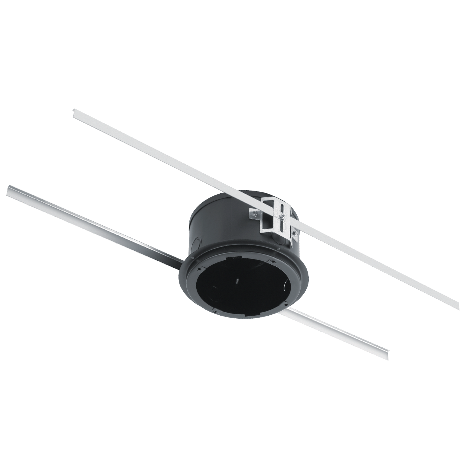 The EZ Mount Enclosure/Rail System transfers the composite weight of the speaker, baffle, and enclosure to the ceiling’s support members via adjustable support rails (included). The rails may be adjusted vertically and then secured to the specially designed, pre-mounted enclosure brackets with screws (furnished).