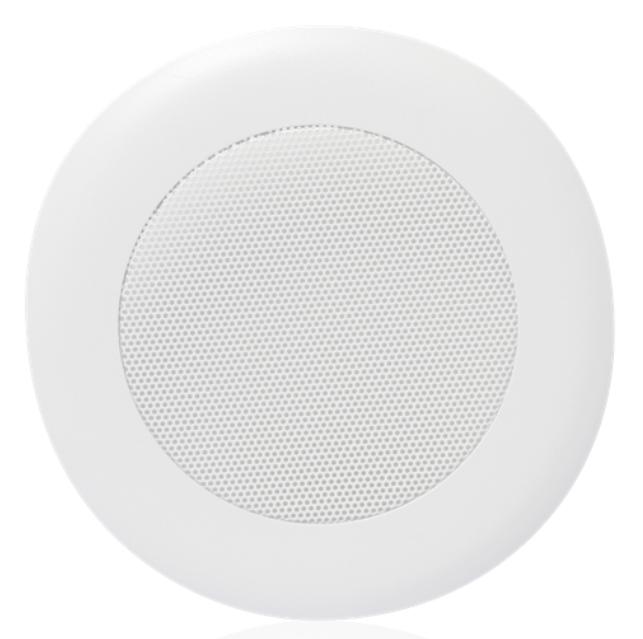 Aesthetic value highlights the round Strategy FA720-6 grille. The unit's sturdy, two piece construction features a perforated, mesh grille, welded to a formed outer ring. The grille's perforated design and narrow ring width enable it to embrace selective applications, while providing optimum speaker performance.