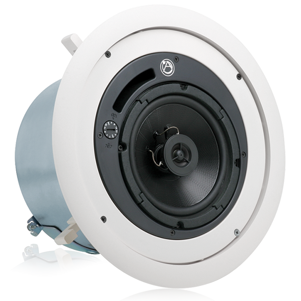 The loudspeaker component matches the performance of the legendary AtlasIED FA136 driver. High quality construction 6" coaxial cone type driver includes a 1" voice coil and polypropylene cone with a butyl rubber surround. The 19mm coaxially mounted tweeter is constructed of PEI. A high sensitivity of 88dB average (92dB peak) means less power may be required to achieve the desired SPL. This loudspeaker is factory assembled in an optimally tuned and ported deep drawn enclosure and includes a specially designed 32 watt low saturation 70.7V / 100V transformer. A convenient front mounted selector switch allows tap selection without the need to remove the speaker from the ceiling. This switch also includes a transformer bypass setting for 8Ω direct coupled operation.