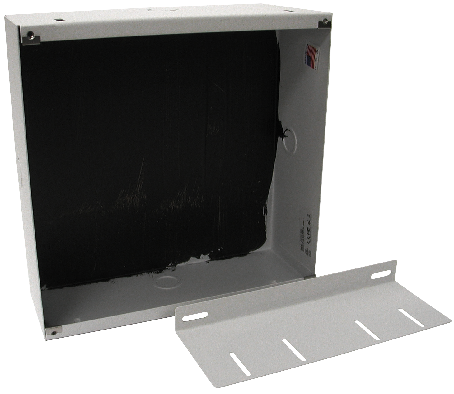 Flush mount enclosure is designed for use only with AtlasIED speaker system models IP-SM. The unit includes a slot style mounting system to accommodate almost any material thickness. The enclosure is constructed of 20-gauge CRS and finished in reclaimed powder coat finish.