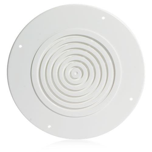 This high-impact, polystyrene plastic recessed grille has an attractive ceiling-white finish in round styling.