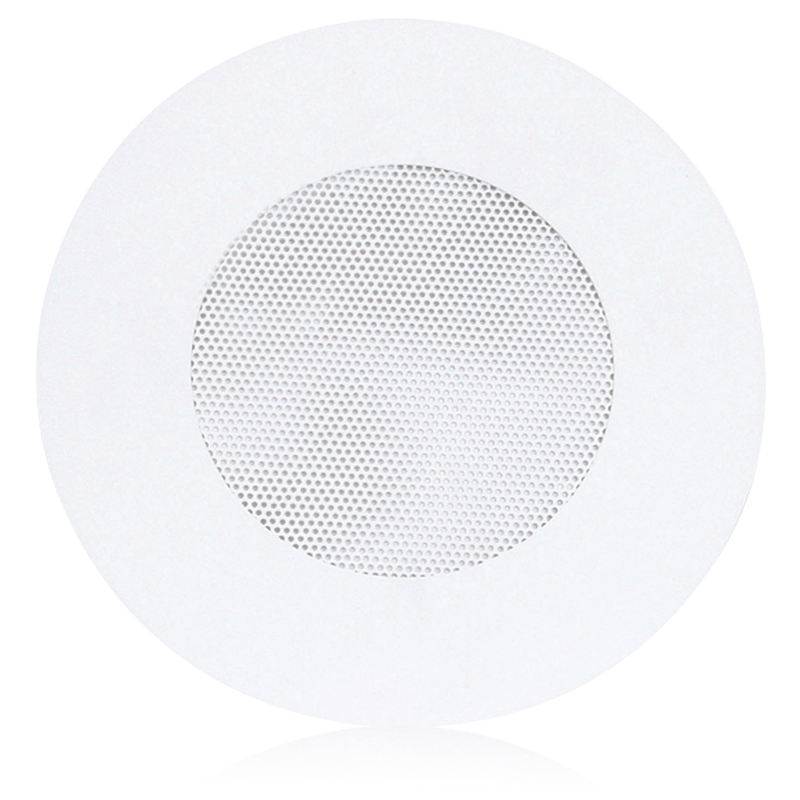 Torsion-spring installation and concealed speaker studs provide for an uninterrupted appearance.