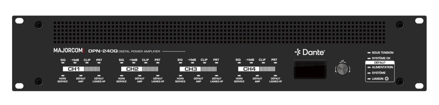 Puissance | 4 x 240 W RMS @ 70 V/100 V Classe D Charge Min 41.6 Ω, Capacitée Min 0.01uF |