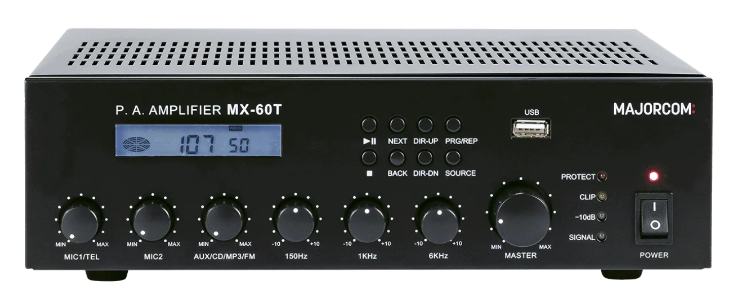 Ampli-préampli 60W/100V – 2 entrées micro – 1 AUX avec tuner FM & USB