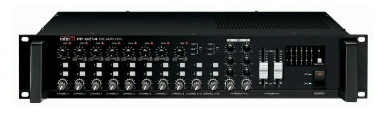Pré-ampli 10 entrées, 2 sorties, 2 priorités, alimentation phantom