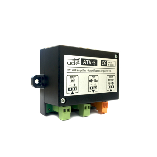 - 5W wall amplifier specially designed to broadcast the audio signal from a TV to a nearby room via an in-ceiling speaker.