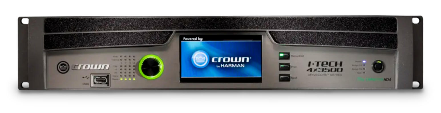 L'amplificateur I-Tech 4x3500HD est le premier amplificateur de sonorisation de tournée haute puissance du marché. Il dispose de quatre entrées (analogique, AES3 et CobraNet™), entièrement routables vers l'une des quatre sorties. Chaque canal bénéficie d'une gamme complète de traitements OMNIDRIVEHD™, incluant la célèbre suite de limiteurs LevelMAX™, et prend en charge les filtres FIR à phase linéaire, tels qu'utilisés dans les derniers réglages d'enceintes JBL V5. Ajoutez à cela la technologie brevetée de classe I de Crown, qui offre une puissance de sortie sans compromis sur les quatre canaux, et vous comprendrez aisément pourquoi l'I-Tech 4x3500HD est l'amplificateur de sonorisation de tournée phare de Crown.