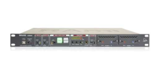 - Contrôle et programmation de tous les paramètres par liaison IP grâce au serveur web intégré. Celui-ci permet aussi de prendre connaissance des vingt derniers événements survenus, des informations des trames numériques en temps réel et de l'état de la commutation. Un switch en face avant permet de rappeler l'adresse IP d'usine et un port USB permet la mise à jour du firmware.