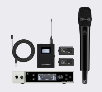 Ce Combo Set se compose d’1 x EW-DX SKM-S (micro main avec interrupteur MUTE), 1 x capsule MMD 835 (cardioïde, dynamique), 1 x EW-DX SK (émetteur de poche), 1 x MKE 2 (microphone cravate omnidirectionnel), 1 x récepteur rackable EW-DX EM 2 (2 canaux) et 2 x batteries rechargeables BA 70.