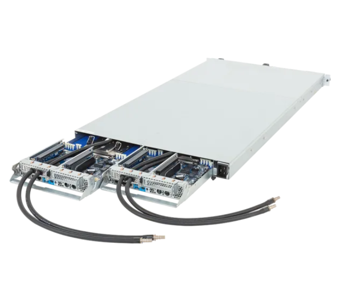 Serveur à haute densité - Intel Xeon 6900 - DLC NVMe/SATA/SAS-4 1U 2 nœuds DP 4 baies Gen5 NVMe/SATA/SAS-4®®