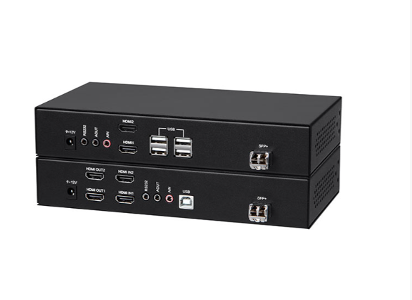 - Uncompressed Extension: Extends uncompressed HDMI video, audio, USB, RS-232 signals over fiber optic cable