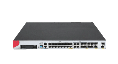 1 × console port (CON) 2 × USB host ports 1 × management port 16 × GE copper ports 6 × GE fiber ports 2 × 10-GE ports 4 × combo interfaces |