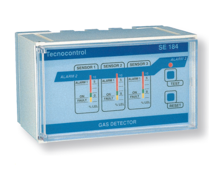 Centrale pour installation en tableau avec sondes déportées, elle peut recevoir 1, 2 ou 3, SE 192 ou 193KM ou KG (ATEX). Elle possède 2 seuils de détection de gaz et déclenche les 2 relais au dépassement des seuils d'alarmes correspondants. La concentration de gaz est affichée par les barregraphes. Le second seuil est volontairement temporisé au déclenchement (30s.) afin d'éviter des alarmes intempestives dues à une présence momentanée de gaz (purge).