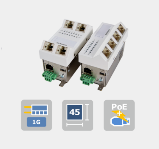 - Smallest & most compact Gigabit Ethernet switch on the market! M45 design for tool-free installation in cable ducts, floor tanks etc.