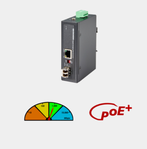 - Cost-effective plug and play Gigabit and PoE+ performance for industrial environments with DIN rail adapter and extended operating temperature range -40°..+75°C