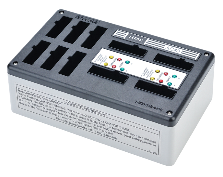 The AC40A charges BAT41 batteries, which are compatible with the DX100, DX121, DC200 and DX340ES digital wireless systems. BAT41s charge the BP200, BP210, BP300 and BP340 beltpacks and the WH200, WH210, WH300, and WH340 all-in-one headsets.