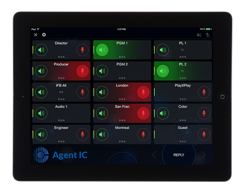 Agent-IC is a virtual mobile client that provides an intercom user station on Android and iOS tablets, smartphones and with remote control on smartwatches. Connecting to Eclipse HX IP-capable matrices, Gen-IC virtual intercom or LQ Series IP interfaces, Agent-IC provides access to the system's available resources including partyline channels with their call signals and logic controls on Gen-IC and LQ as well as one-to-one, one-to-many, ISO and IFB communication on Eclipse matrix intercom systems. Individual keyset listening levels help users focus on specific channels while monitoring others. All this functionality can be tailored to each user to create an efficient intercom user station on their tablets and smartphones.