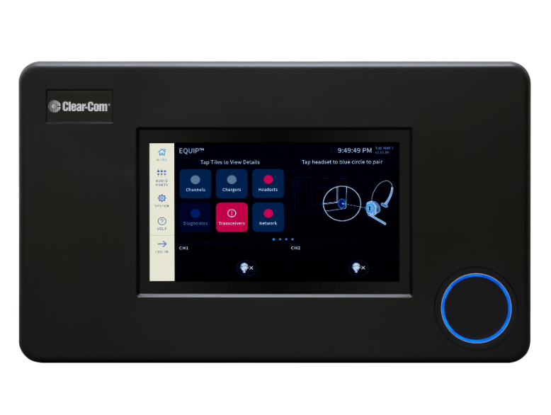 The EQUIP-BASE is a wall mountable base station with a touchscreen for the set-up and monitoring of the EQUIP wireless intercom system. It is the control center for the EQUIP system to provide communication with other wireless users in production or team environments. Supports four remote transceivers powered from the base up to 500 feet. Digital and analog audio connections provide flexibility for connecting to wired intercom and external audio sources. A remote network connection facilitates updates and remote status monitoring.