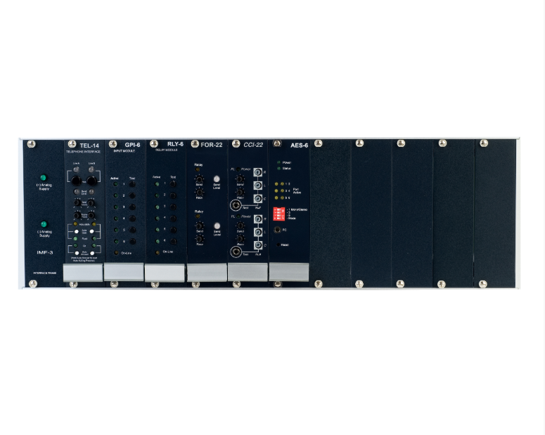 Interface Modules can be housed directly in Eclipse HX Median, Delta, and Delta-Lite frames, or within dedicated external interface frames. The high-density IMF-3 (3RU) holds up to 11 modules and utilizes the PSU-101 power supply, with support for a second unit for redundancy. For compact requirements, the IMF-102 (1RU) hosts two modules and combines an internal power supply and external redundancy connections into a single chassis.