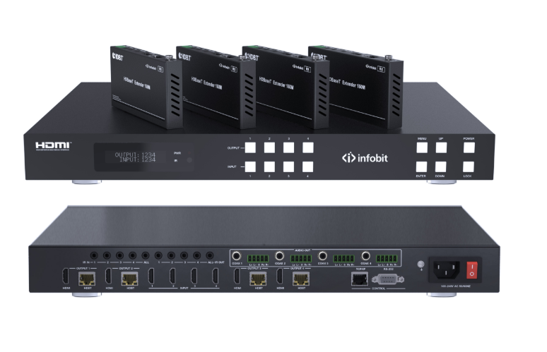 4× 4 commutateur matriciel HDMI 18Gpbs 4K60 avec HDBaseT
