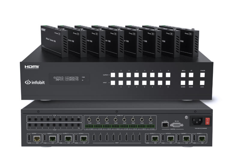 8× 8 commutateur matriciel HDMI 18Gpbs 4K60 avec HDBaseT