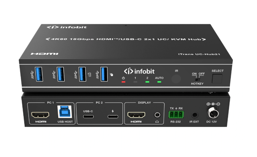 Commutation via des boutons du panneau avant, des touches raccourcis clavier/souris, télécommande IR et RS-232