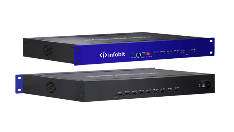 Entrées / sorties: 4x entrées HDMI (1x 4K@60Hz , 3 fois 4K@30Hz ), 1x entrée DP ( 4K@60Hz ), 9x sorties HDMI ( 1080p@60Hz ), et 1x DP boucle.