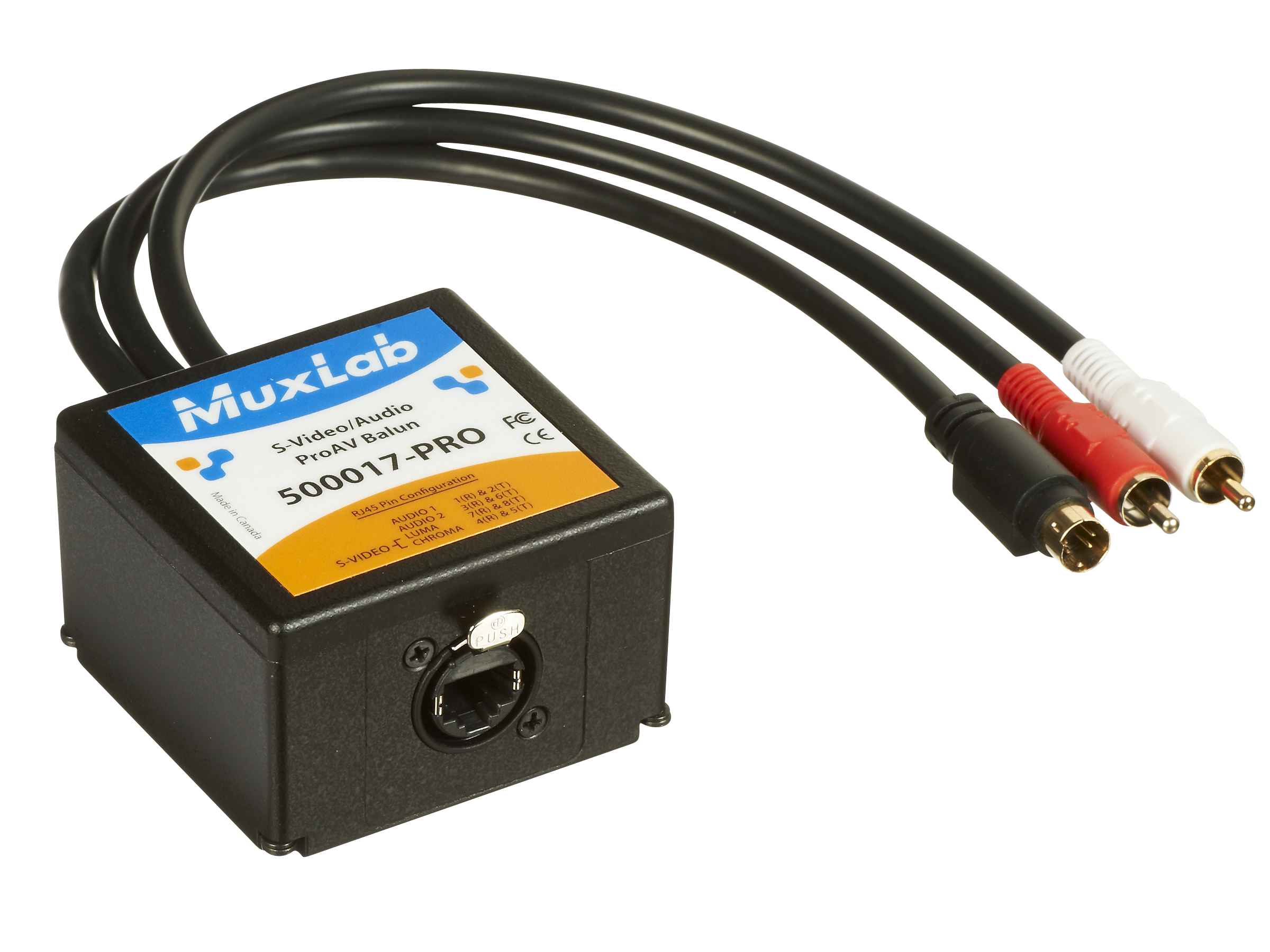 Le S-Video/Audio ProAV Balun (500017-Pro) permet de transmettre un (1) canal S-Video et un (1) canal audio stéréo via un câble torsadé non blindé (UTP) jusqu’à 1000 ft (305 m) dans une connexion point à point. Le SVideo/Audio ProAV Balun est doté d’un boîtier métallique robuste, d’un Ethercon RJ45 et de câbles intégrés robustes adaptés à un environnement audio-vidéo professionnel plus exigeant. Le SVideo/Audio ProAV Balun est compatible avec les 500017, 500038 et 500038-WP pour un câblage plus polyvalent.