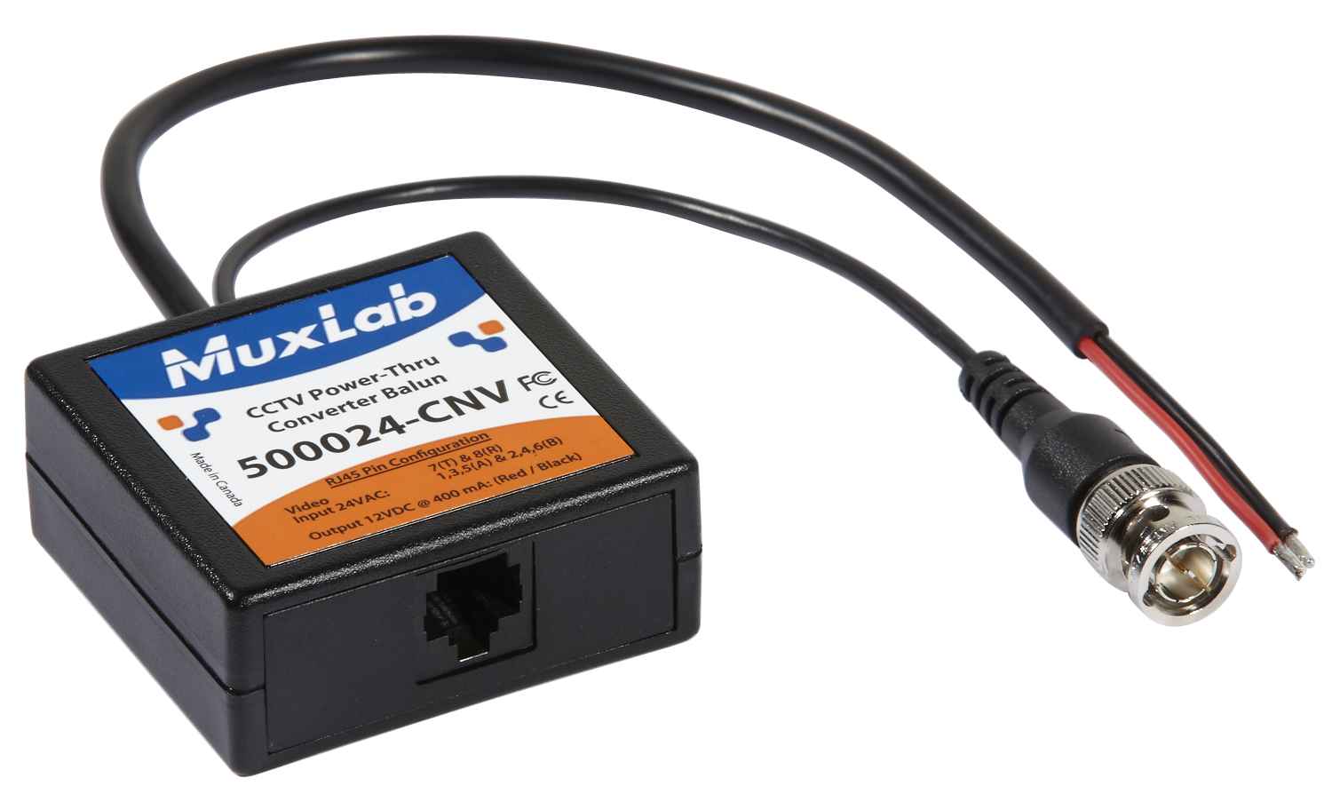 De plus, le produit convertit le 24VAC en 12VDC afin de permettre l’alimentation à distance des caméras 12VDC depuis une alimentation centrale de vidéosurveillance 24VAC. Le convertisseur CCTV Power-Thru Balun est installé côté caméra et fonctionne en collaboration avec le CCTV Power-Thru Balun (500024), le Passive CCTV Power Integrator Hub (500136) ou le Passive CCTV Hub (500130) de MuxLab pour une solution complète de câblage
