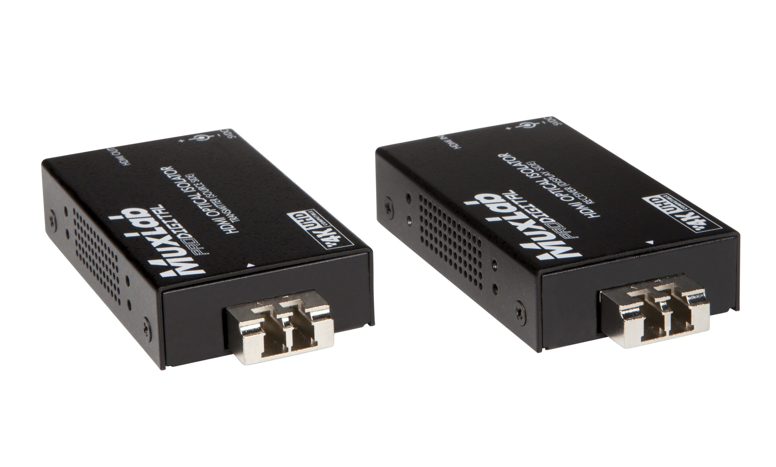L’isolateur optique HDMI (500462) permet d’isoler et de connecter complètement les équipements HDMI jusqu’à 984 pieds (300 m), tout en assurant une communication unidirectionnelle (sans signalisation de retour) via un (1) câble fibre multimode LC 50/125 I±m OM3 en configuration point à point à résolution 1080p.