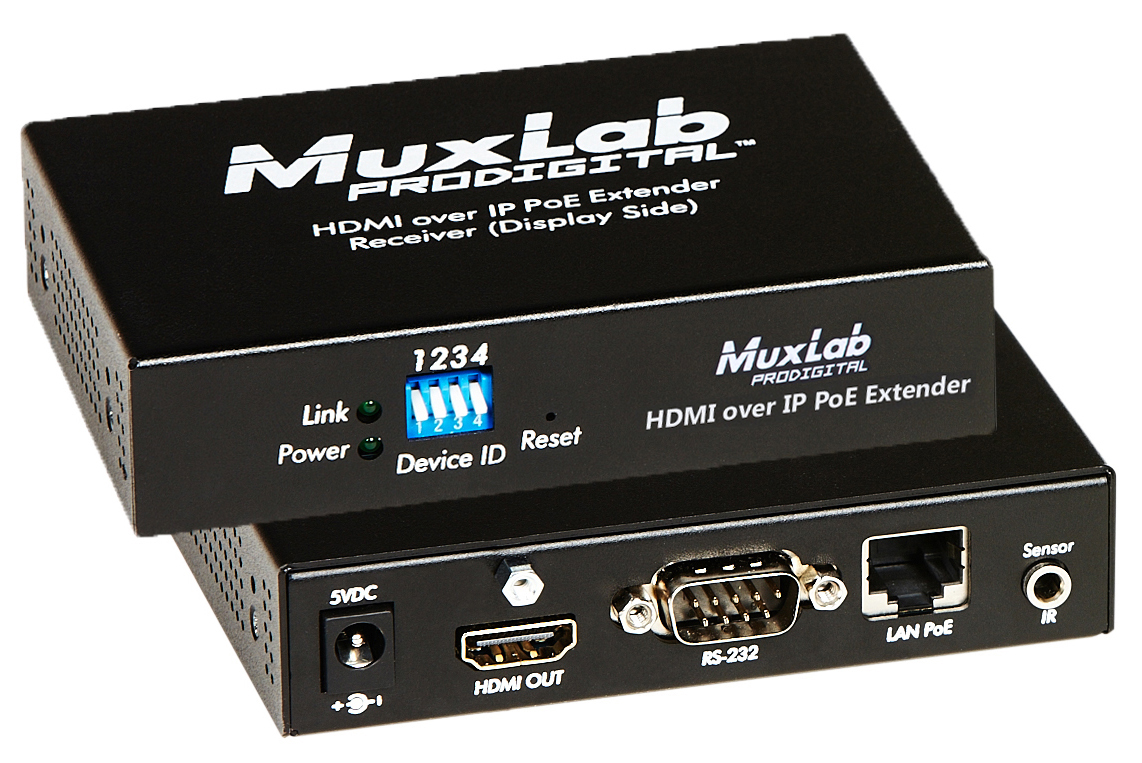 Le répéteur PoE HDMI sur IP permet de connecter des équipements HDMI pour créer un mur vidéo d’une taille configurable par l’utilisateur (X par Y) supportant des centaines d’écrans, selon la bande passante réseau, en utilisant un récepteur par écran dans le réseau.